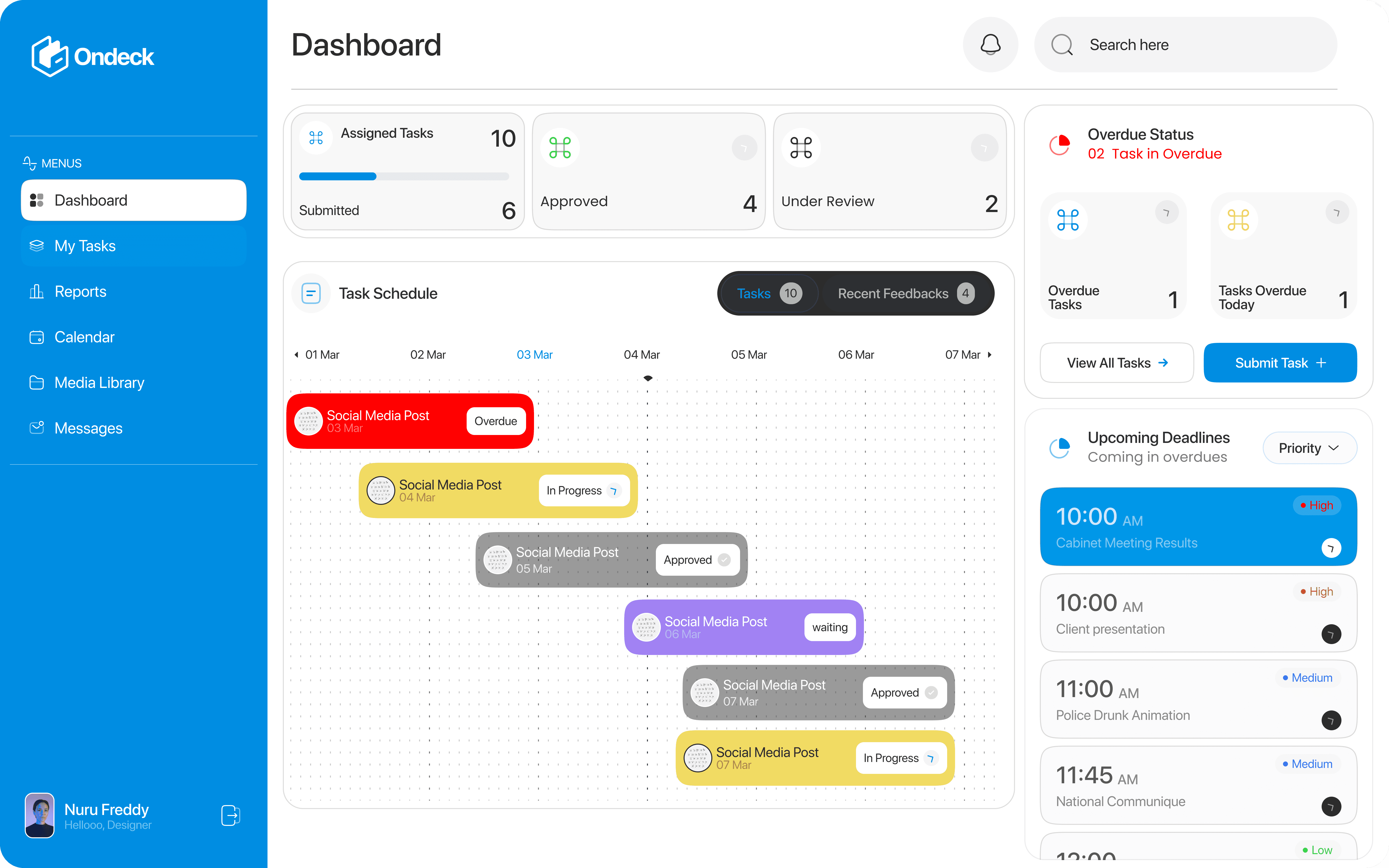 OnDeck is a modern dashboard that transforms complex workflows into clear, actionable insights for leaders and teams.