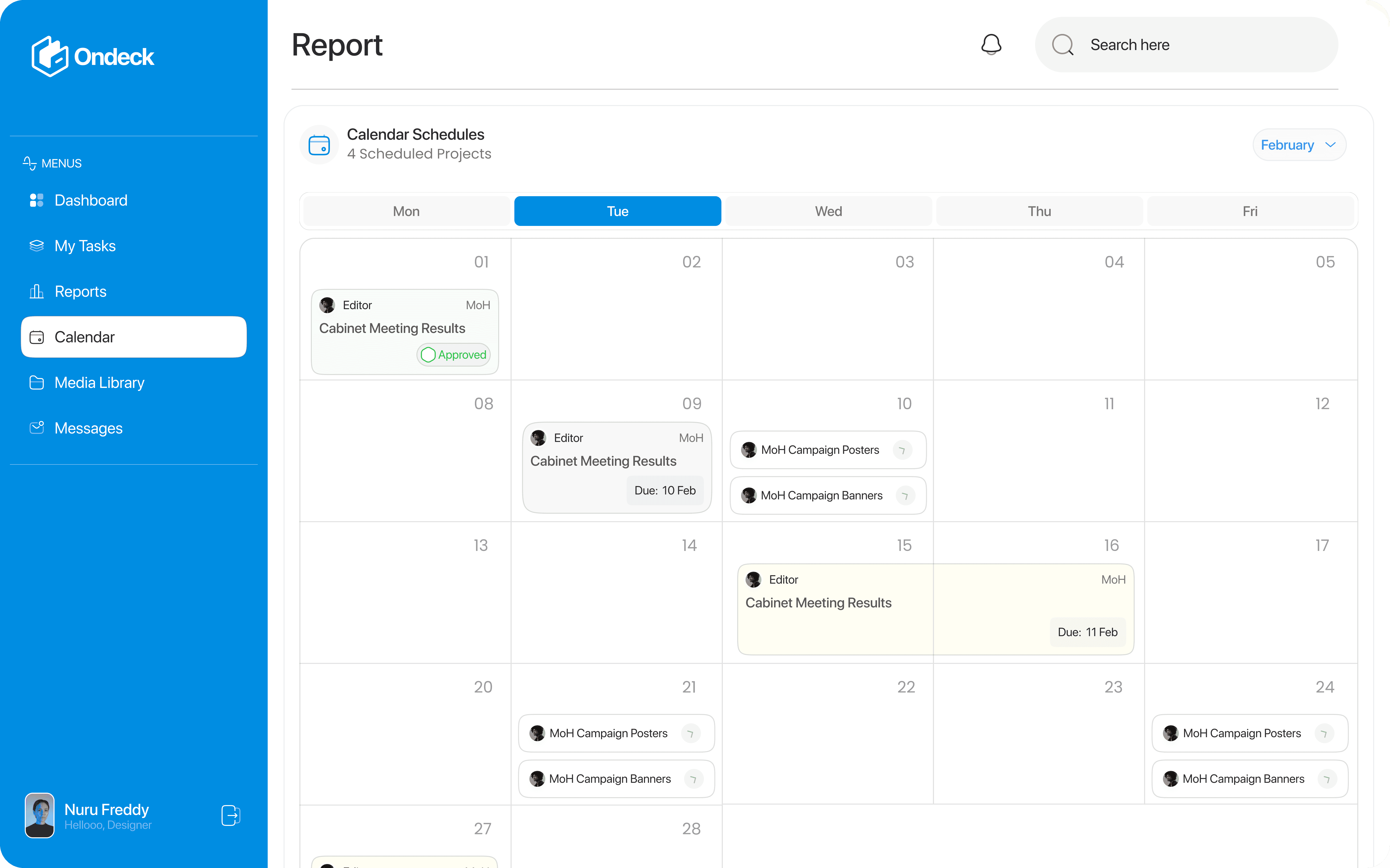 OnDeck is a dashboard built for leaders and teams, designed to simplify oversight and decision‑making. It brings clarity and structure to complex workflows, turning scattered data into actionable insight. With real‑time analysis and intuitive navigation, it empowers users to stay ahead without friction. The design is modern, streamlined, and human‑centered, reflecting a tool that supports focus and leadership.